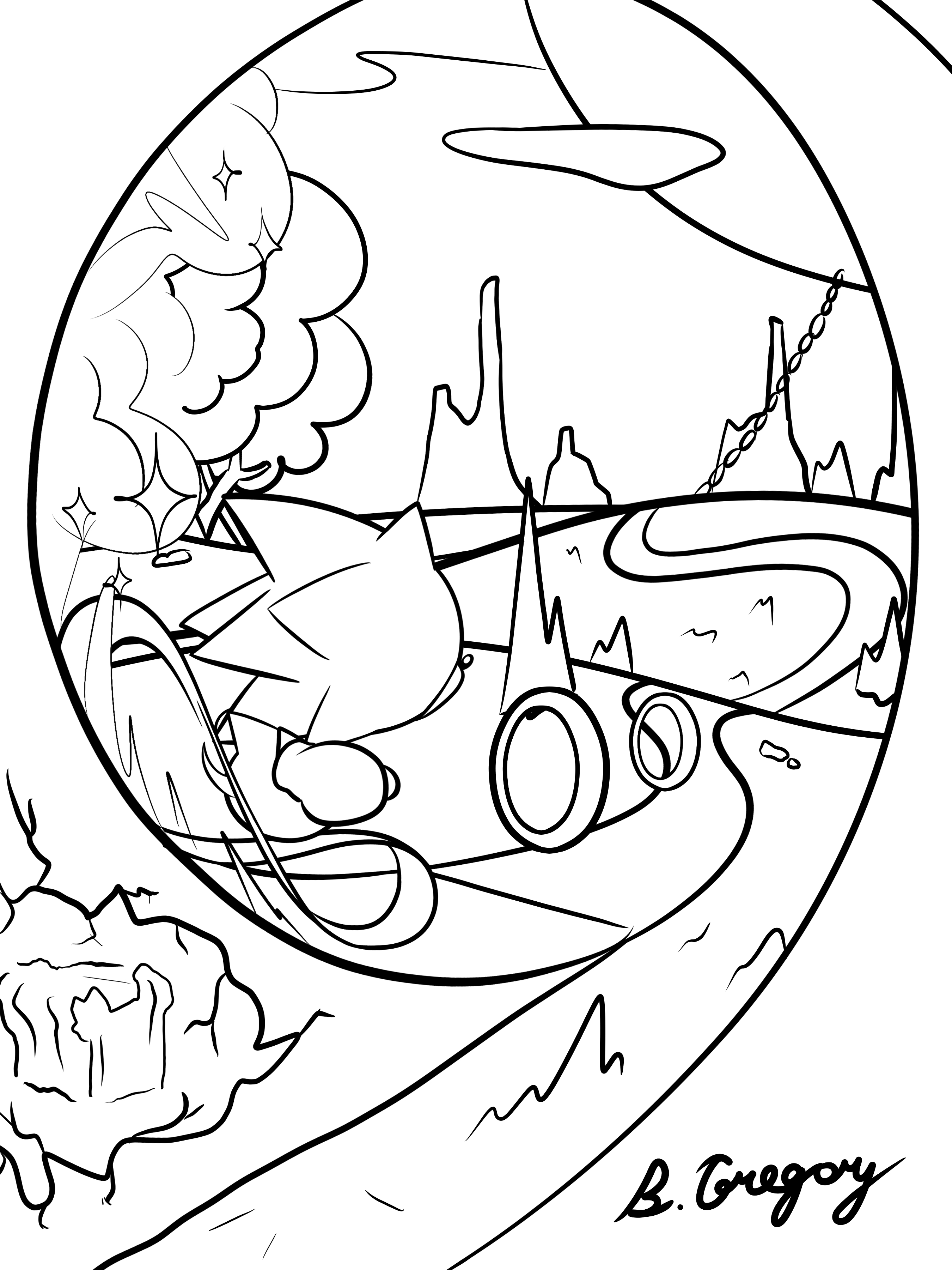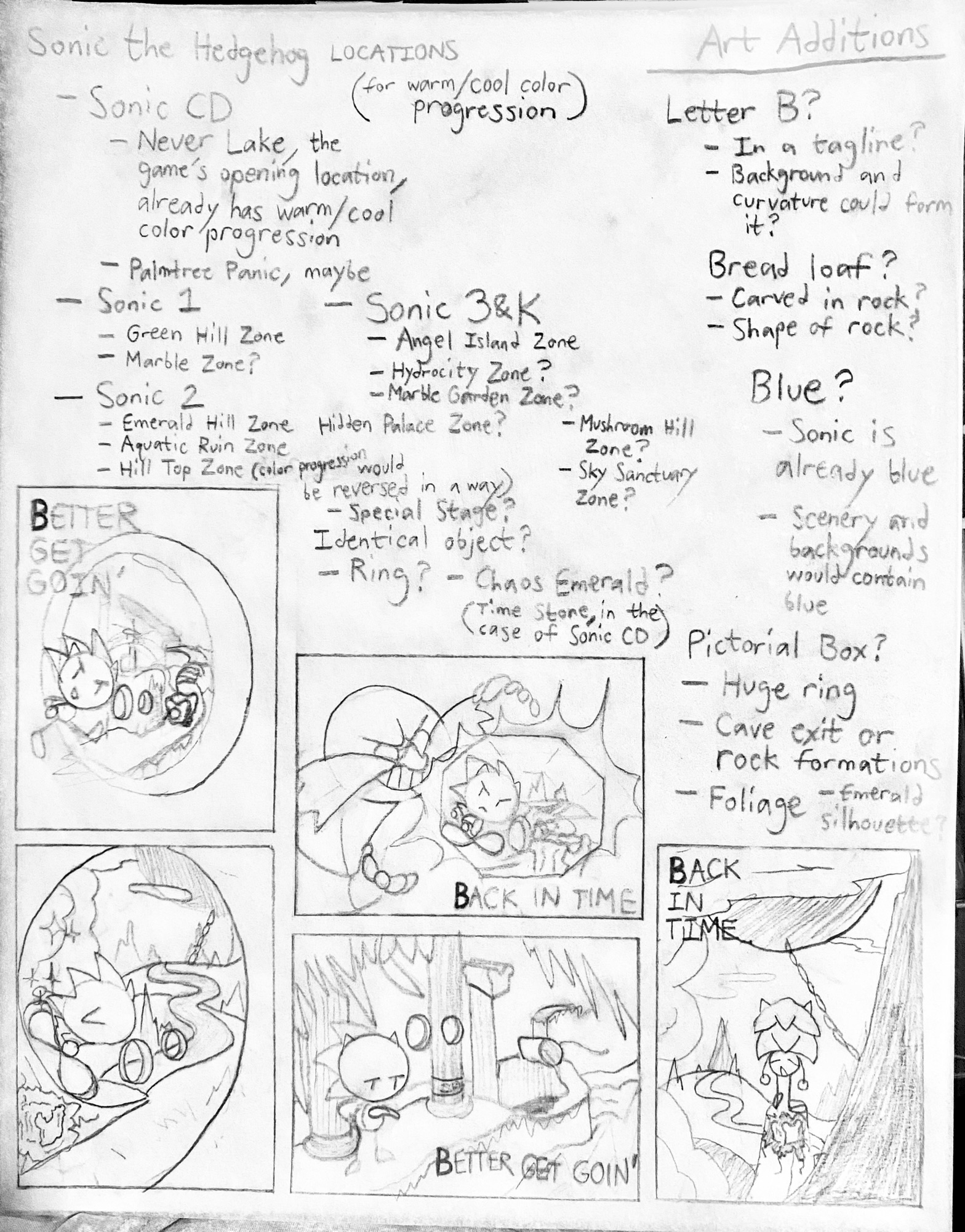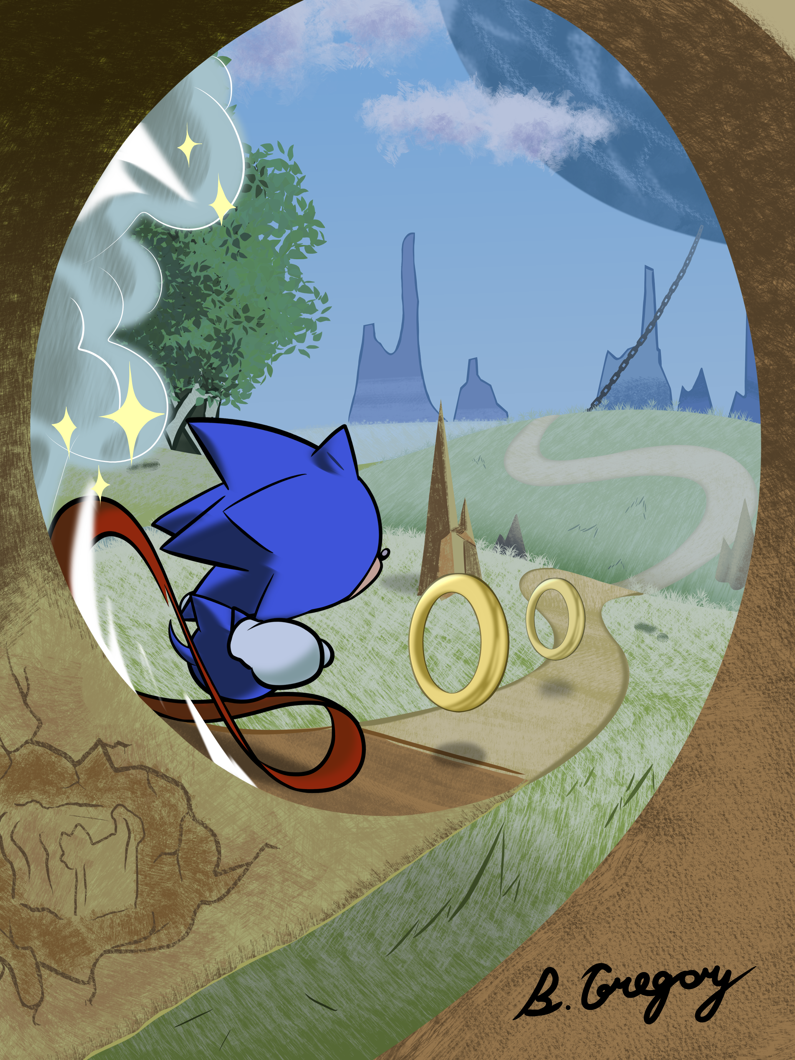 The design of the environment isn't meant to match any part of Never Lake in particular, though I watched footage of it (i.e., the opening cutscene of Sonic CD) and closely examined it to accurately judge how to build the environment in this piece, while also using it for color and design reference.