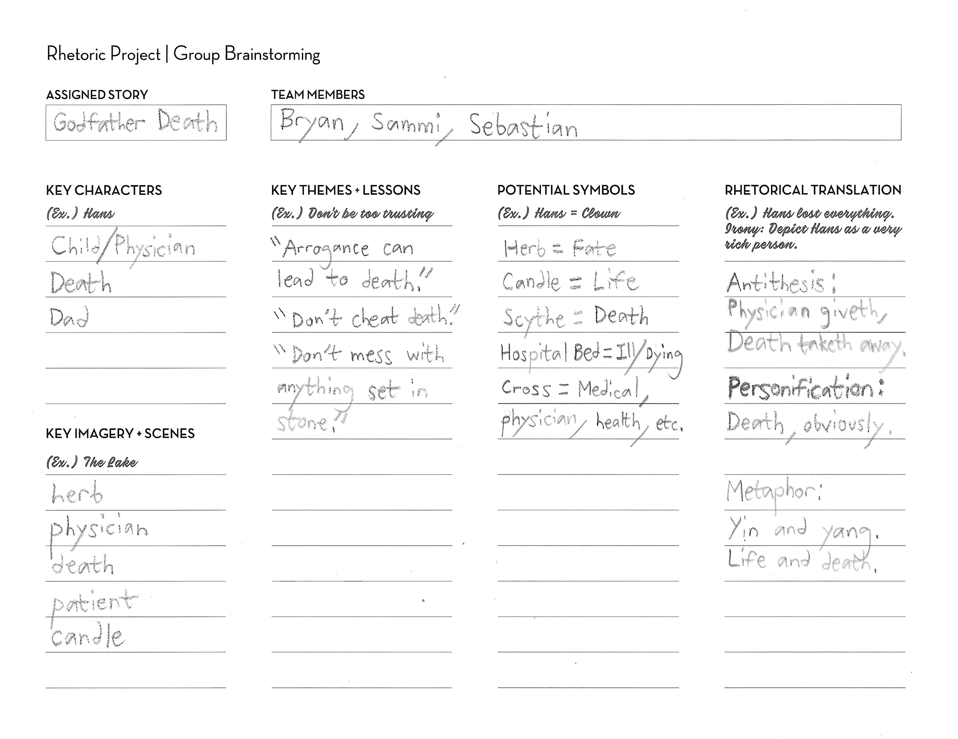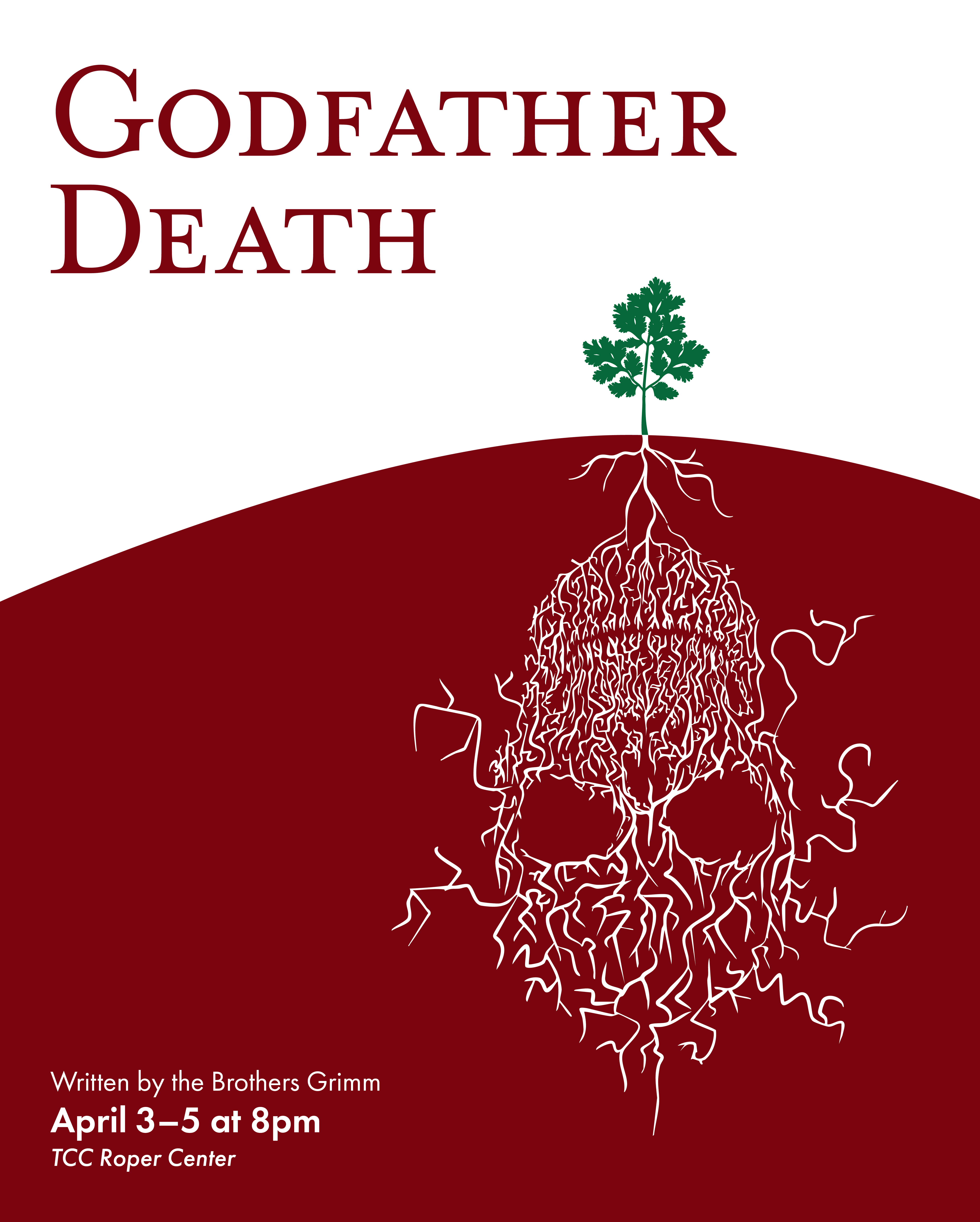From a list of Grimm fairy tales, I needed to create a hypothetical theatre poster out of one of them, while incorporating a rhetorical device. The one used here exemplifies antithesis, showing an herb growing from the roots of Death (i.e., the skull).