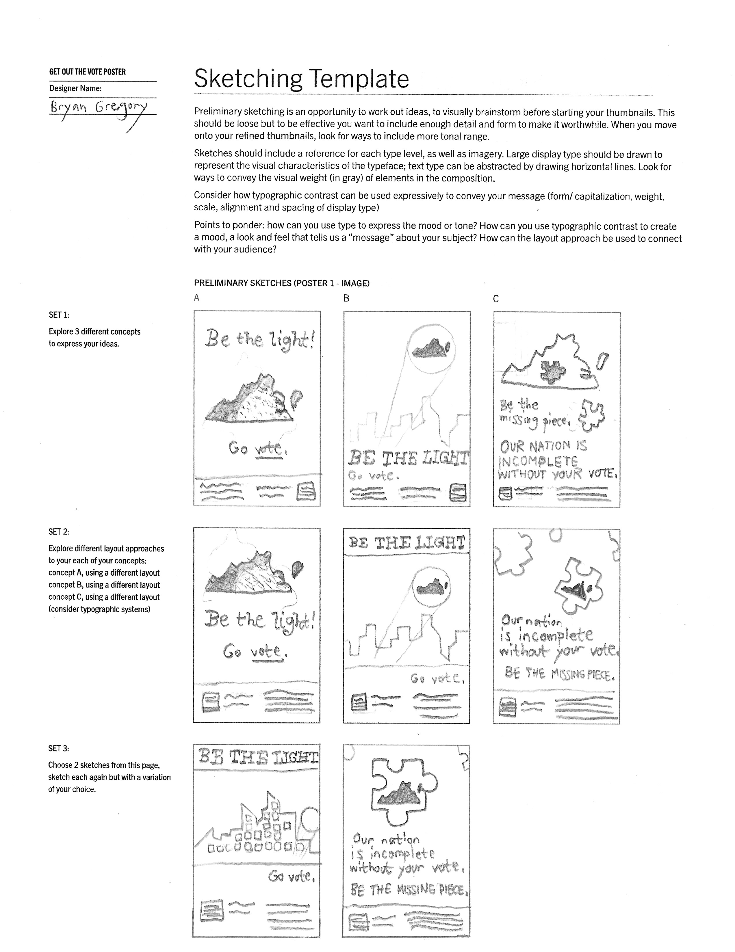 Inspired by the Get Out the Vote campaign and AIGA's Design for Democracy, I had to design two types of posters: one where I could use visuals and type, and the other featuring ONLY typography. Each had to feature the “promotion text” (for lack of better word) and a QR code that re-directs to the Virginia Department of Elections.